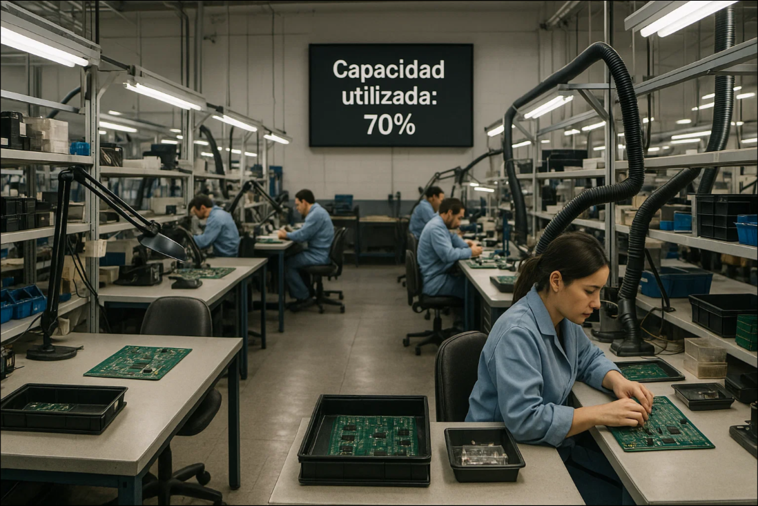 La Utilización de Capacidad indica qué proporción de la capacidad disponible de tu planta (o de un equipo/línea) se está usando realmente en un periodo. Es un termómetro de carga: si está muy baja, hay subutilización y costo fijo ocioso; si está demasiado alta y desbalanceada, aparecen colas, WIP y atrasos. Bien medida y gestionada, te ayuda a sincronizar la producción con la demanda al menor costo posible.